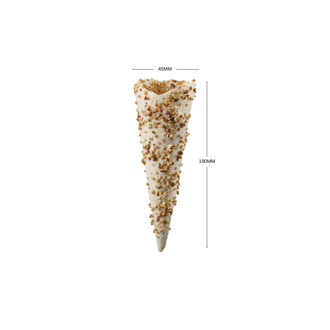 Cono de galleta para helado, bañado en chocolate blanco y recubierto con almendras troceadas, para sorprender a tus clientes con una experiencia única de sabores y texturas en boca.