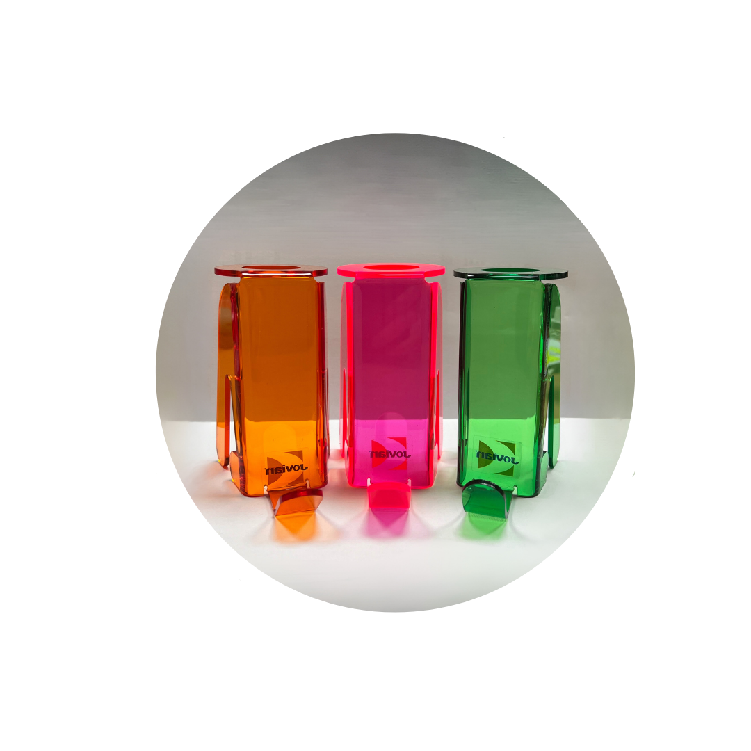 Está diseñado con una cavidad apta para depositar el cono sin necesidad de sostenerlo, y una plana que ayuda a la estabilidad del producto.