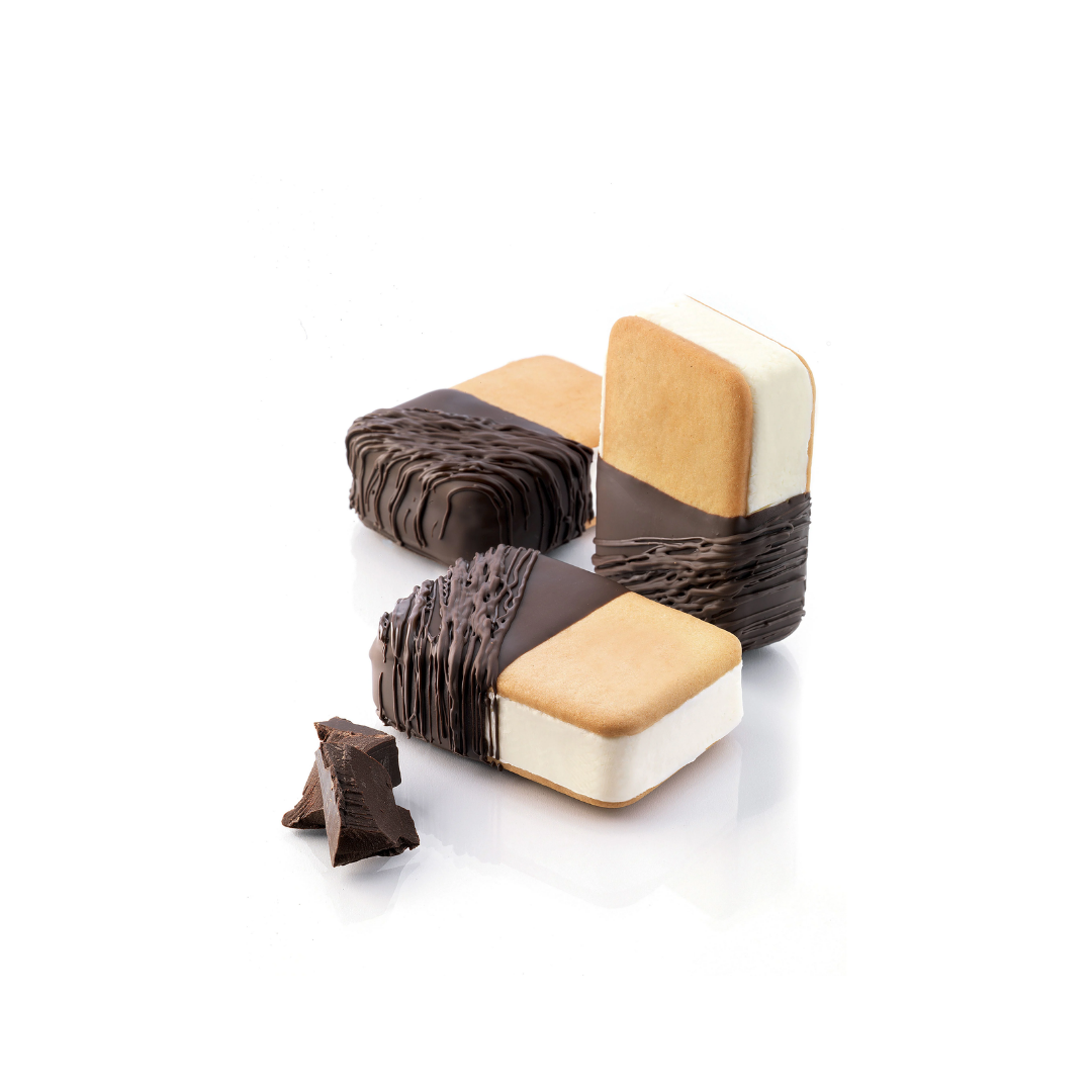Bisco Mini Double es un kit compuesto por 2 moldes de silicona y una bandeja VGel01 de 30 x 40 cm, ideal para preparar galletas de helado en versión mini.