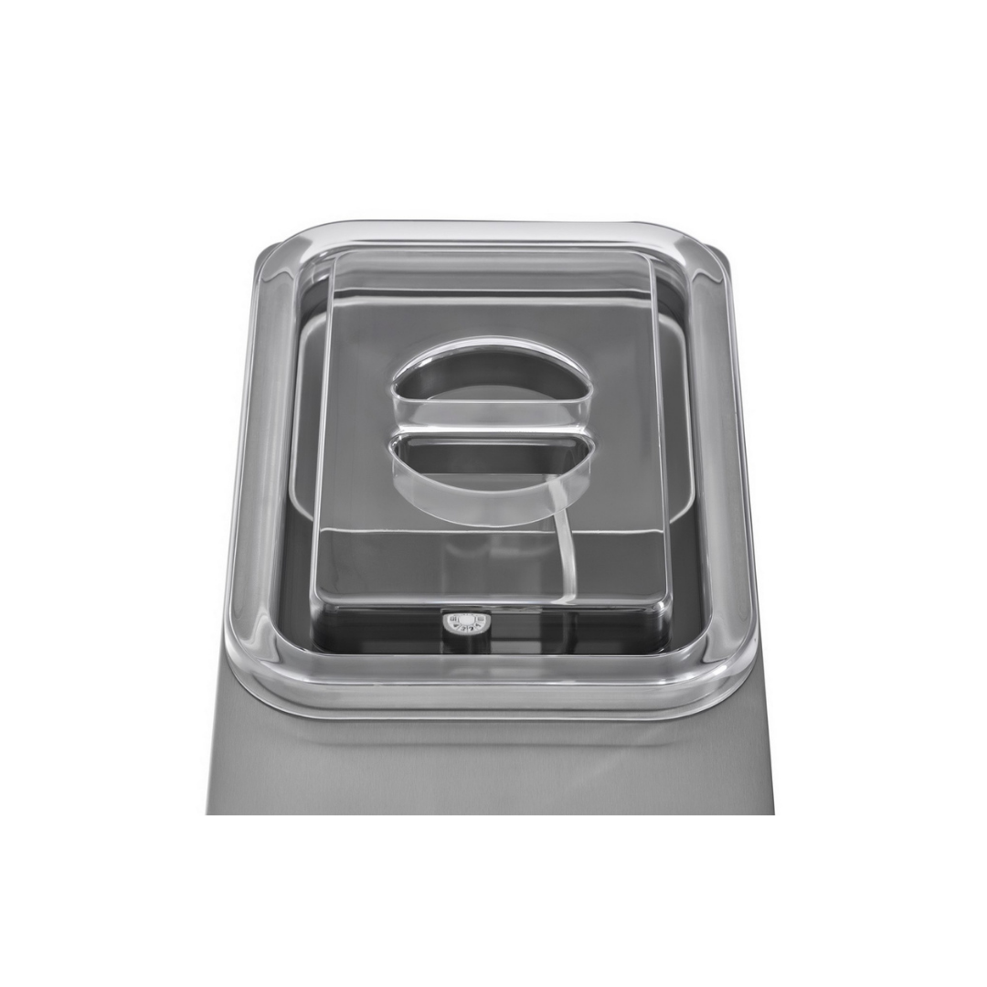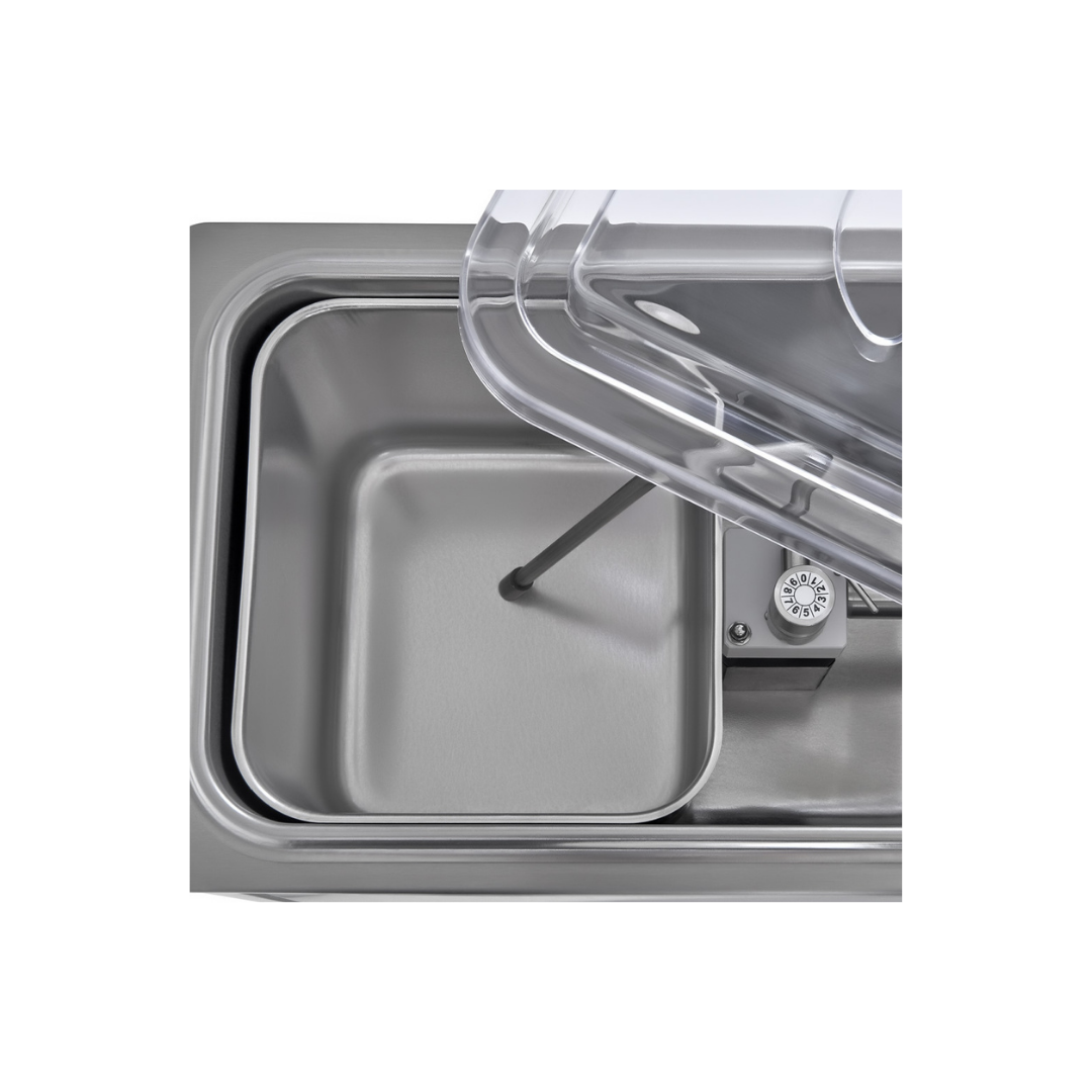 Refrigeración regulable (a la instalación) hasta el grifo de suministro. Cubeta extraíble de la nata líquida, enfriada indirectamente.
