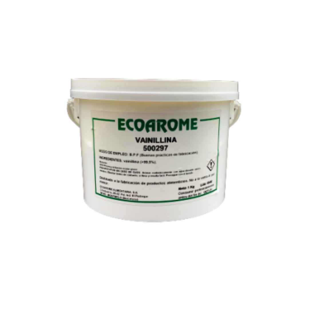 La vainilla en polvo cristalizada o vainillina, es de aspecto polvoriento blanco brillante y cristalino. Tiene un aroma y sabor similar a la vainilla natural y es muy utilizado en repostería.