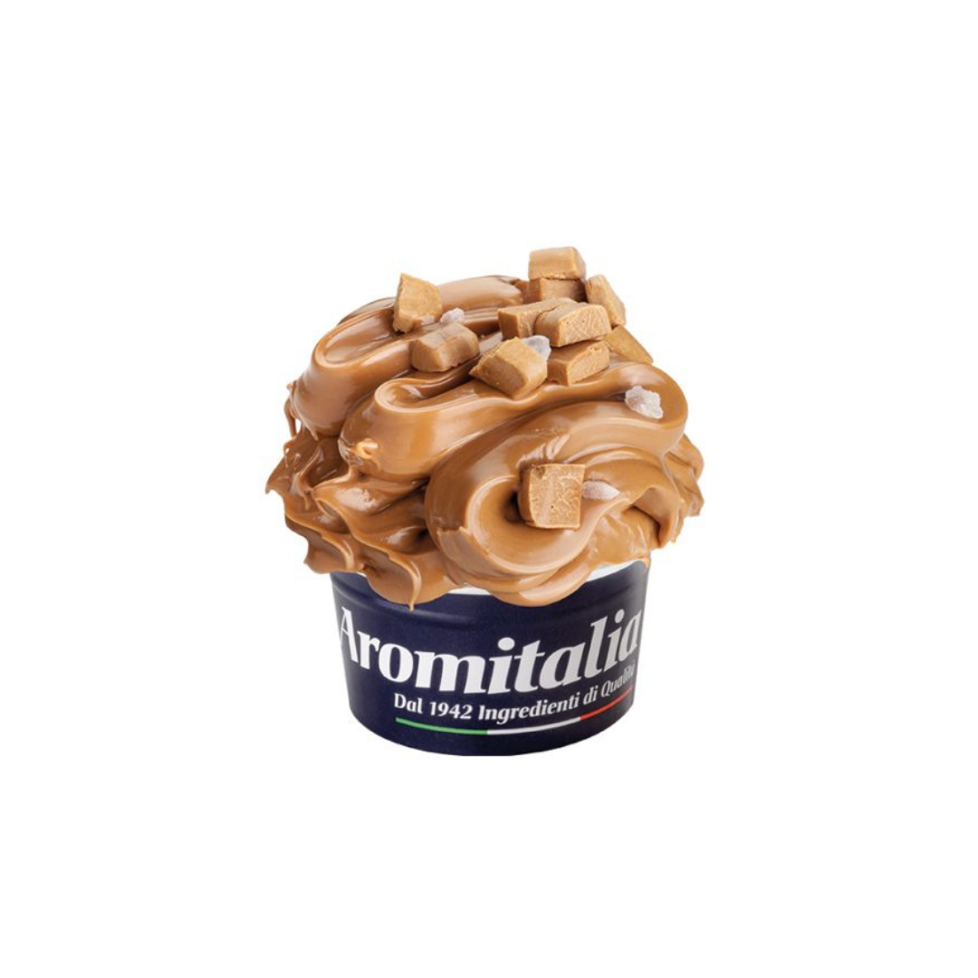 La crema Amoretta caramel burro salato es para helados de sabor a caramelo o, con marcadas notas de mantequilla, y un sabor ligeramente salado con crunch en cada bocado. Está pensada para probarla directamente, vertirla en conos de helado o usarla como relleno para tus recetas mas gourmets. Se pueden realizar sabrosos creminos alterándolos con capas de helado directamente en la tarrina.