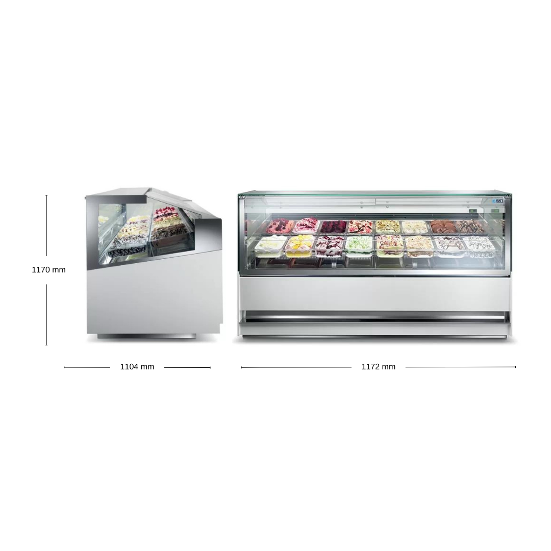 - Un sistema de iluminación con tecnología full LED en la parte superior e inferior de la vitrina hacer ver al helado como suspendido en el interior de la vitrina.